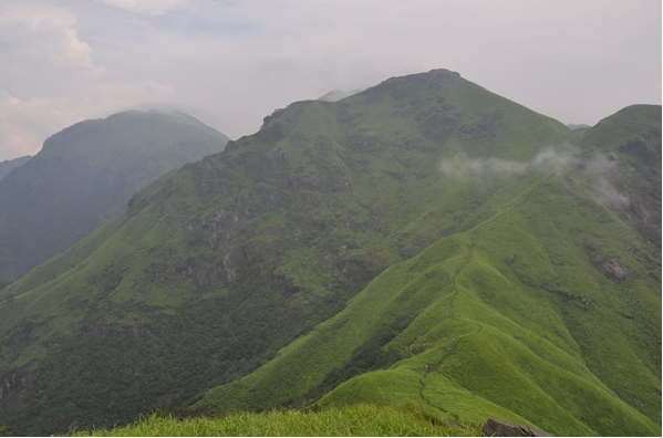 山脊路上,翻過一座又一座的山頭,全程海拔落差在1200多米--1900米之間起伏連綿,滿目的綠色也隨之少限延伸。
